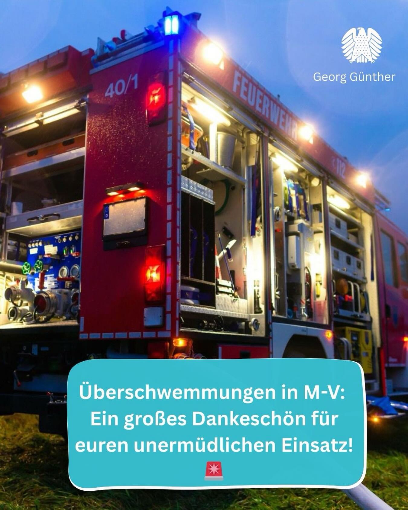 Überschwemmungen in M-V: Ein großes Dankeschön für euren unermüdlichen Einsatz! 🚨💪🚒 Das anhaltende Tauwetter hat unser Bundesland stark gefordert: 316 Einsatzstellen allein im Landkreis Vorpommern-Rügen und 216 weitere im Landkreis Vorpommern-Greifswald in kurzer Zeit - überflutete Straßen und Keller, unterspülte Wege, vollgelaufene Gräben. Viele von euch waren rund um die Uhr im Einsatz. Ich möchte einfach Danke sagen. Danke an die Kameradinnen und Kameraden der Freiwilligen Feuerwehren, an die Kreisfeuerwehrverbände, an die Hilfsorganisationen, an die Einsatzkräfte des Technisches Hilfswerkes, an die Mitarbeiter der Leitstelle, Landwirte, Unternehmern sowie an alle weiteren Helfer. Ihr habt unter hoher Belastung besonnen, professionell und eng abgestimmt gearbeitet. Viele von euch haben dafür Beruf, Familie und Privates zurückgestellt. Das verdient großen Respekt. #vorpommernrügen #vorpommerngreifswald #Feuerwehr #THW #Ehrenamt